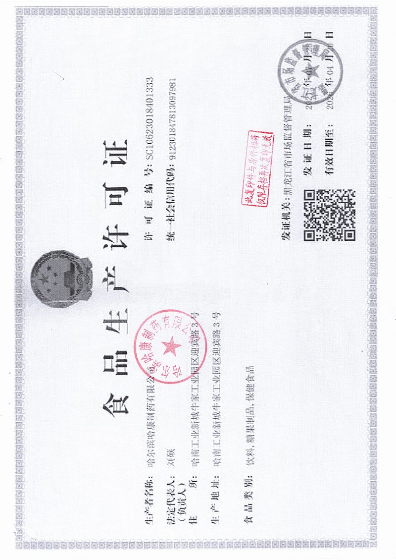 生產(chǎn)企業(yè): 哈爾濱哈康制藥有限公司