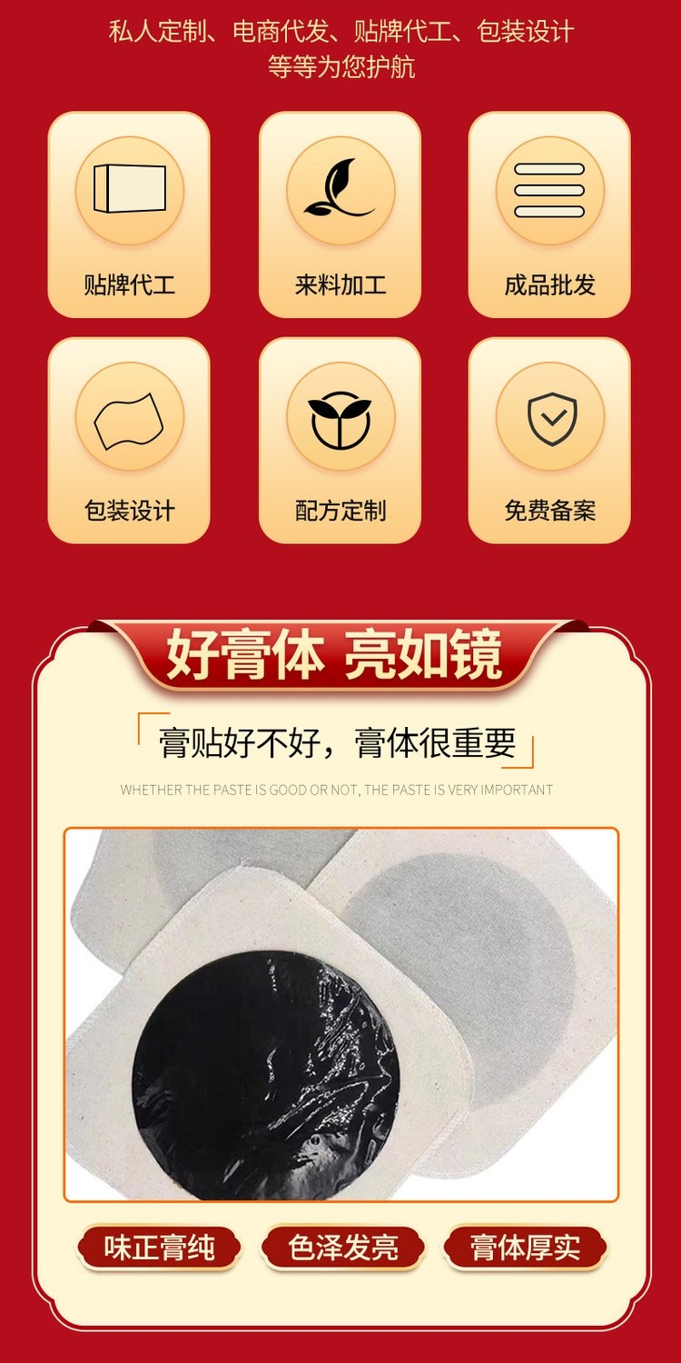 | 補(bǔ)充說(shuō)明 | 更多 傳統(tǒng)黑膏貼/膏藥貼/oem貼牌代加工 |