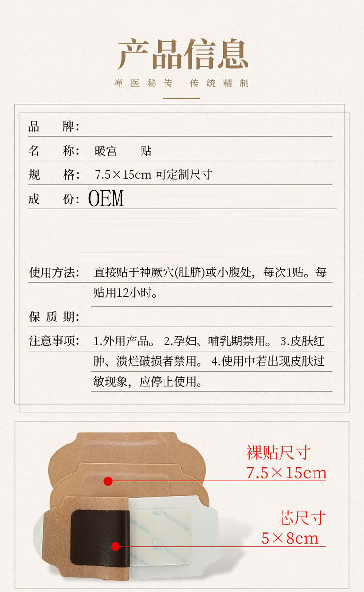 | 通用名稱(chēng) | 暖宮貼/暖寶寶貼/熱灸貼/oem貼牌代加工 |