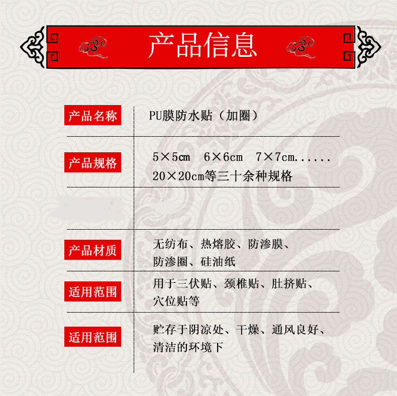| 補充說明 | 中標產(chǎn)品 是 產(chǎn)品用途 本品針對人體特定穴位,對中醫(yī)穴位起刺激作用。 主要成分 本品由遠紅外陶瓷粉、丙烯酸壓敏膠、水刺無紡布、不銹鋼珠及離型紙制成。 使用方法 、清潔相應穴位,先以拇指依次揉按相應穴位,每穴1~2分鐘,范圍由小到大,力量由輕到重,探尋敏感點。2、確認包裝無破損后,打開包裝,取出穴位貼敷治療貼,將貼劑的隔離膜撕去,以鋼珠對準相應穴位敏感點貼壓,1片/穴、天,每日適度按壓3~5次,每次3~5分鐘,1個療程為10天,療程間隔2~3天 更多 穴位壓力刺激貼/空白貼/三伏貼/oem貼牌代加工/pu膜防水貼 |