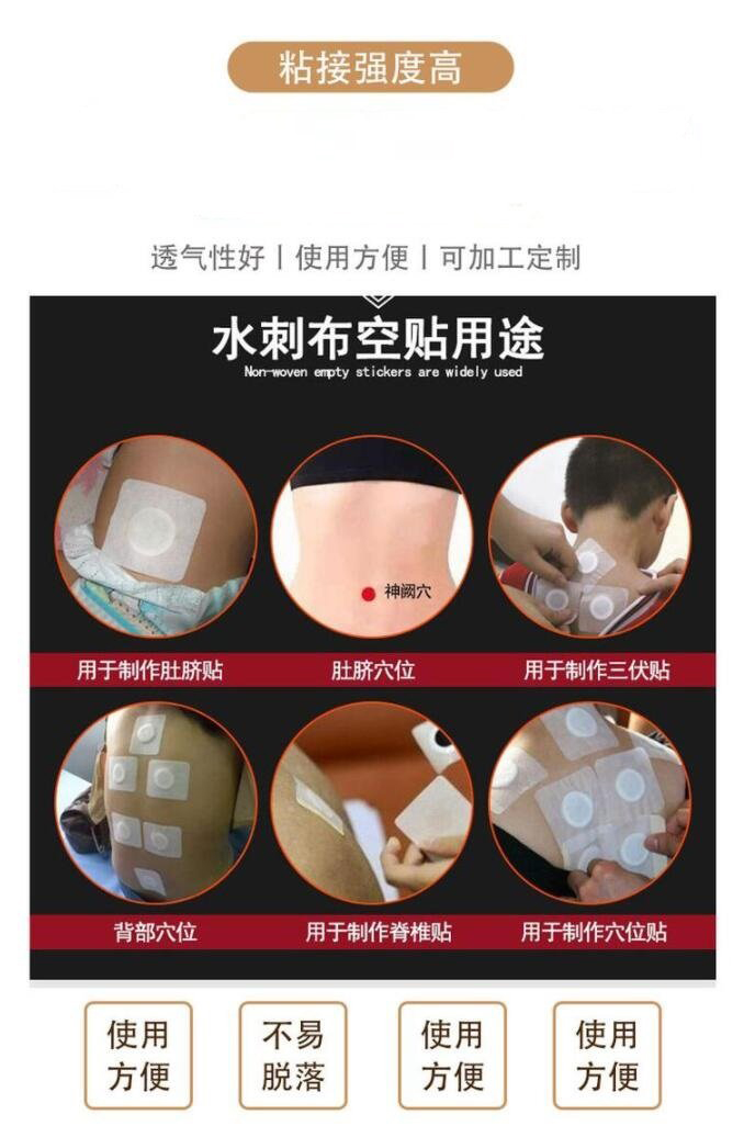| 補(bǔ)充說(shuō)明 | 更多 膏布空貼三伏貼穴位貼直供醫(yī)院藥店診所oem貼牌代加工中標(biāo)產(chǎn)品 是 產(chǎn)品用途 本品針對(duì)人體特定穴位,對(duì)中醫(yī)穴位起刺激作用。 主要成分 本品由遠(yuǎn)紅外陶瓷粉、丙烯酸壓敏膠、水刺無(wú)紡布、不銹鋼珠及離型紙制成。 使用方法 、清潔相應(yīng)穴位,先以拇指依次揉按相應(yīng)穴位,每穴1~2分鐘,范圍由小到大,力量由輕到重,探尋敏感點(diǎn)。2、確認(rèn)包裝無(wú)破損后,打開包裝,取出穴位貼敷治療貼,將貼劑的隔離膜撕去,以鋼珠對(duì)準(zhǔn)相應(yīng)穴位敏感點(diǎn)貼壓,1片/穴、天,每日適度按壓3~5次,每次3~5分鐘,1個(gè)療程為10天,療程間隔2~3天 |