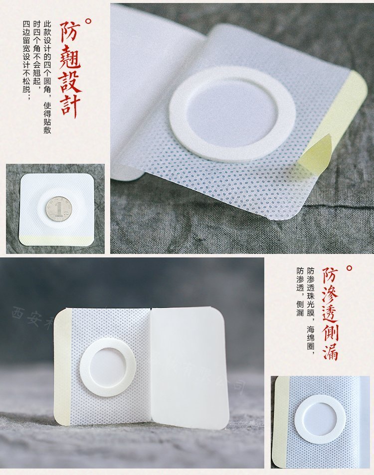 | 補(bǔ)充說明 | 更多 無紡布空白貼三姑貼穴位貼直供醫(yī)院藥店診所oem貼牌代加工產(chǎn)品用途 本品針對人體特定穴位,對中醫(yī)穴位起刺激作用。 主要成分 本品由遠(yuǎn)紅外陶瓷粉、丙烯酸壓敏膠、水刺無紡布、不銹鋼珠及離型紙制成。 作用機(jī)理 穴位貼敷治療貼的壓敏膠布剝離強(qiáng)度不小于1.0N/cm,持粘性應(yīng)不大于2.5mm,遠(yuǎn)紅外發(fā)射波長范圍8um-15μm,法向比輻射率≥75%。 使用方法 1、清潔相應(yīng)穴位,先以拇指依次揉按相應(yīng)穴位,每穴1~2分鐘,范圍由小到大,力量由輕到重,探尋敏感點。2、確認(rèn)包裝無破損后,打開包裝,取出穴位貼敷治療貼,將貼劑的隔離膜撕去,以鋼珠對準(zhǔn)相應(yīng)穴位敏感點貼壓,1片/穴、天,每日適度按壓3~5次,每次3~5分鐘,1個療程為10天,療程間隔2~3天。 |