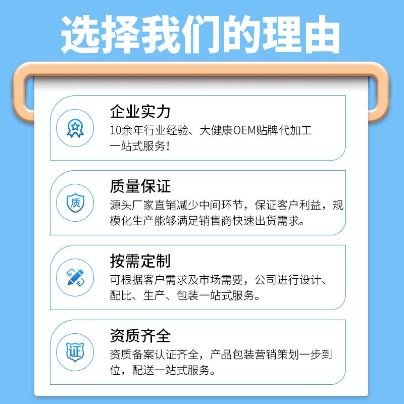 | 補(bǔ)充說明 | 嘿,你眼中的世界需要一個更明亮的朋友!這就是葉黃素滴眼液給你的承諾。我們的葉黃素滴眼液是由純凈的植物提取物組成,包括葉黃素、金銀花,決明子等,不添加任何防腐劑、人工色素,只為給你*純凈的呵護(hù)。輕輕一滴,保護(hù)你的視力不受損傷。我們工廠具有十六年的市場經(jīng)驗,設(shè)備先進(jìn),嚴(yán)格遵循國家生產(chǎn)標(biāo)準(zhǔn)。你是否也想擁有自己的品牌滴眼液?我們可為您提供貼牌代工服務(wù),讓你的品牌走出市場,走進(jìn)更多人的視線。為您的眼睛保駕護(hù)航,趕快拿起電話點(diǎn)擊咨詢吧 |