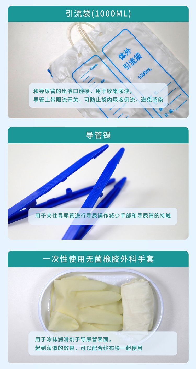 | 使用方法 | 1、根據(jù)患者體型不同選用合適規(guī)格的導(dǎo)尿管。 2、從開(kāi)啟口打開(kāi)包裝,取出導(dǎo)尿管,操作人員手部和患者使用部位應(yīng)進(jìn)行常規(guī)消毒,操作人員應(yīng)戴好手套。 3、為便于導(dǎo)尿管插入,導(dǎo)尿管尖端及管身可用醫(yī)用液體石蠟或其他合適的潤(rùn)滑劑潤(rùn)滑 4、導(dǎo)尿管插入后,應(yīng)用膠帶等合適方法加以固定,防止脫落滑出體外,患者引流部位用滅菌紗布遮蓋,防止外界環(huán)境污染。 5、導(dǎo)尿管與引流導(dǎo)管連接,通過(guò)流量調(diào)節(jié)裝置控制流量 |