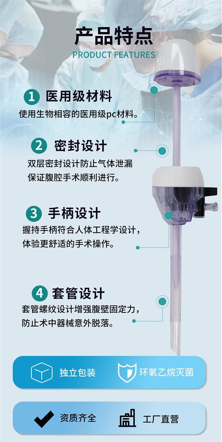 | 產(chǎn)品用途 | 供腹腔鏡檢查和手術(shù)過程中,對人體腹壁組織穿刺,建立腹腔手術(shù)的工作通道用。 |