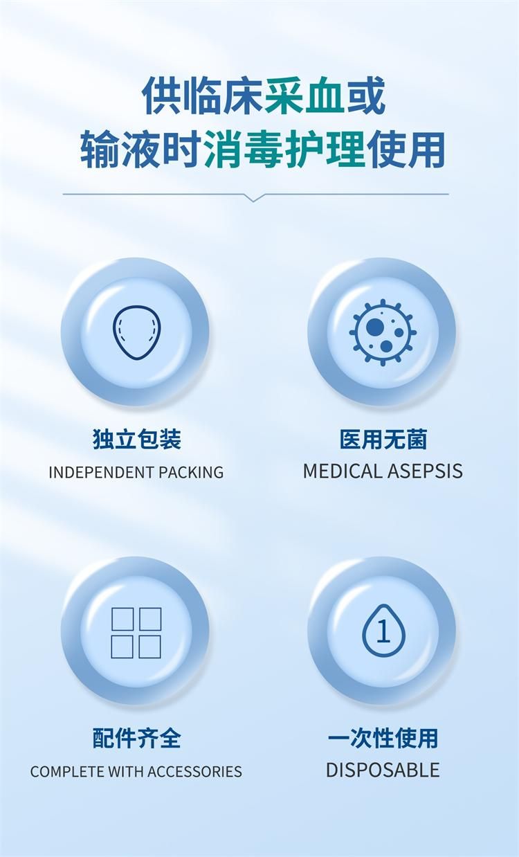 | 產(chǎn)品用途 | 臨床采血或輸液時消毒護(hù)理用。 |
