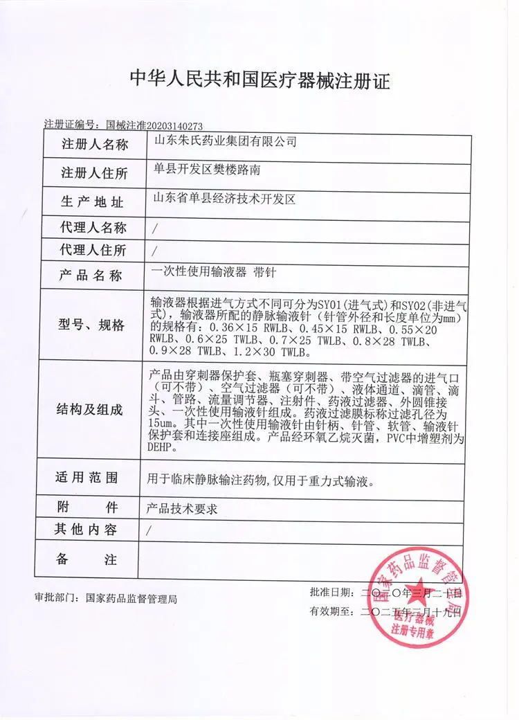 | 產(chǎn)品名稱 | 一次性使用輸液器帶針 |