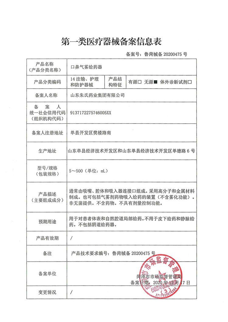 批準(zhǔn)文號(hào): 魯菏械備20200475號(hào) 【驗(yàn)證真?zhèn)?/a>】