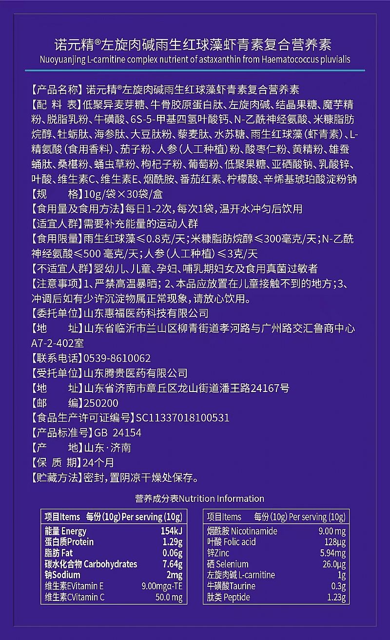 諾元精左旋肉堿雨生紅球藻蝦青素復(fù)合營養(yǎng)素