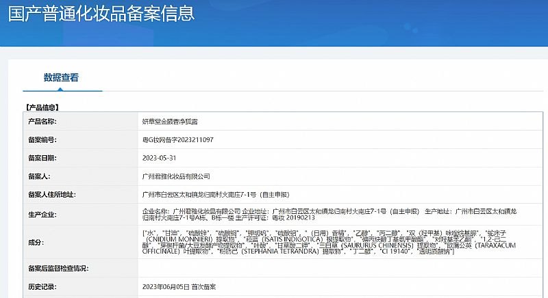批準(zhǔn)文號(hào): 粵G妝網(wǎng)備字2023211097 【驗(yàn)證真?zhèn)?/a>】