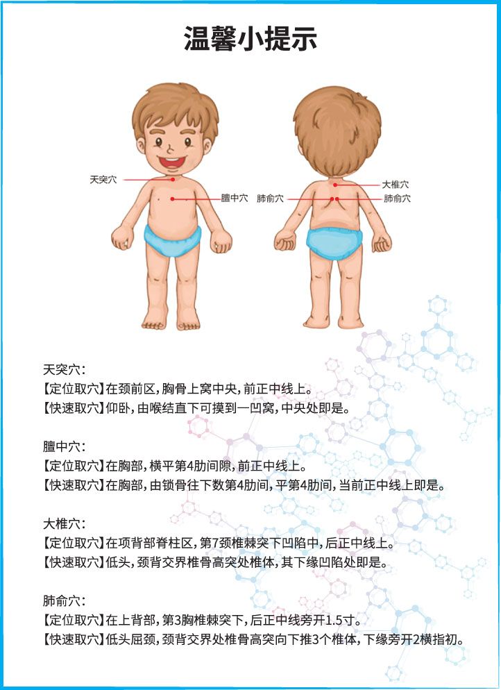 | 使用方法 | 外用。使用前清潔貼敷部位,拆開(kāi)包裝,揭去防粘紙后貼于大椎穴、肺腧穴,癥狀較重可加貼膻中穴、天突穴,或遵醫(yī)囑貼敷穴位,一次貼敷4-5小時(shí)。 |
