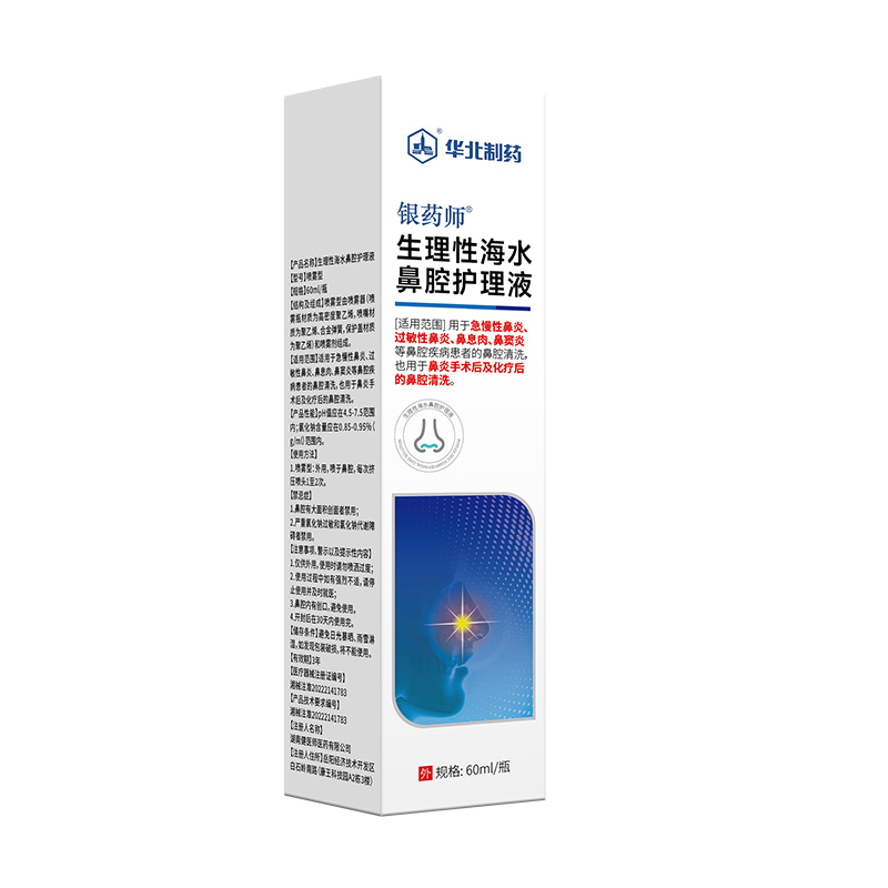 | 補充說明 | [禁忌癥] 1.鼻腔有大面積創(chuàng)面者禁用; 2.嚴(yán)重氯化鈉過敏和氯化鈉代謝障礙者禁用。 [注意事項、警示以及提示性內(nèi)容] 1.僅供外用,使用時請勿噴灑過度; 2.使用過程中如有強烈不適,請停止使用并及時就醫(yī); 3.鼻腔內(nèi)有創(chuàng)口,避免使用。. 4.開封后在30天內(nèi)使用完。 [儲存條件]避免日光暴曬、雨雪淋濕,如發(fā)現(xiàn)包裝破損,將不能使用。 [有效期]3年 [生產(chǎn)批號/生產(chǎn)日期/有效期至]見外包裝 |