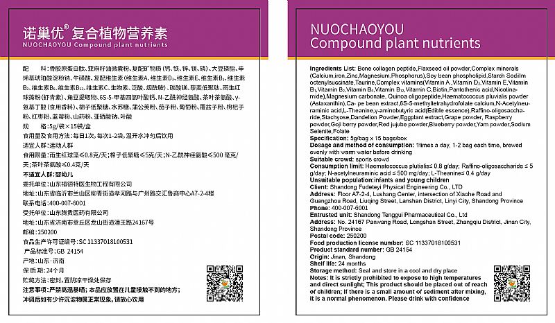 | 產(chǎn)品名稱 | 諾巢優(yōu)復合植物營養(yǎng)素 |