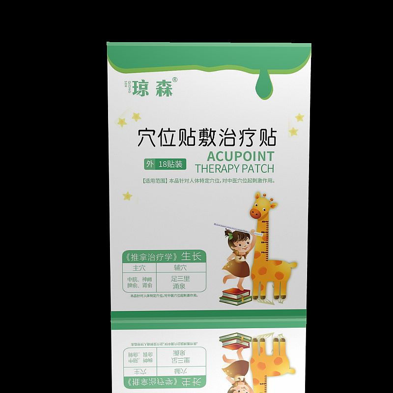 | 產(chǎn)品用途 | 本品針對人體特定穴位,對中醫(yī)穴位起刺激作用。瓊森小兒貼有多種分型,分別適用于:感冒、腹瀉、咳喘、肺炎、腸系淋巴炎、消食、便秘、生長等。 |