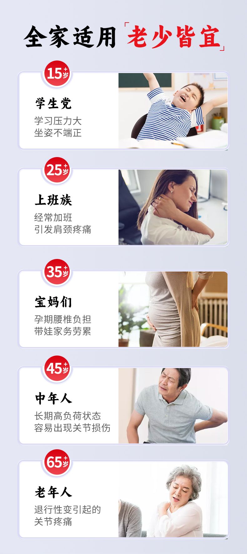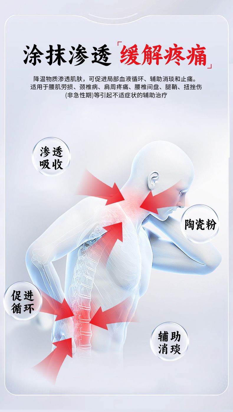 | 產(chǎn)品賣點 | 該產(chǎn)品可促進局部血液循環(huán)、輔助消炎和止痛。適用于腰肌勞損、關(guān)節(jié)炎(慢性期)、骨質(zhì)增生、頸椎病、肩周炎、腰椎間盤突出、腱鞘炎、扭挫傷(非急性期)等引起不適癥狀的輔助治療。 |