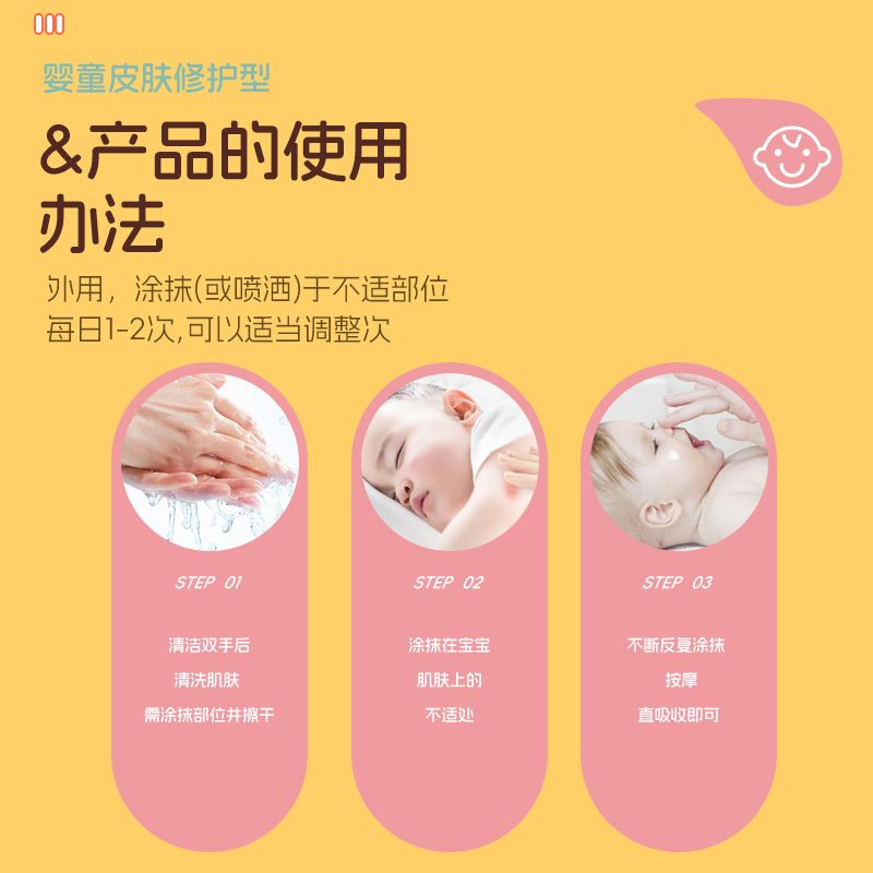 | 產(chǎn)品用途 | 適用于兒童皮膚干燥、過敏、濕癢的人群。 |