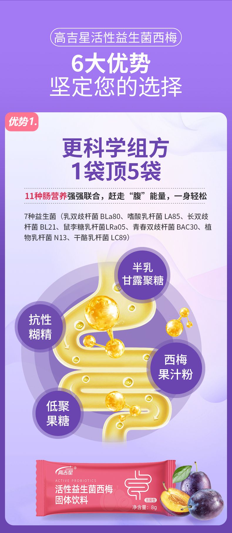 | 產(chǎn)品名稱 | 高吉星活性益生菌西梅固體飲料 |