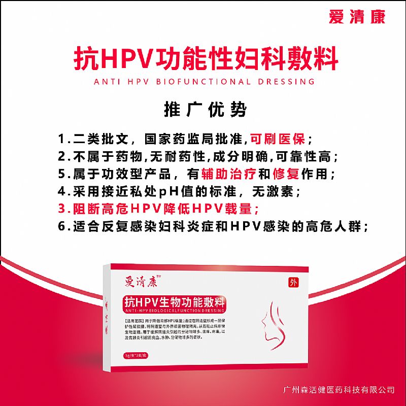 | 產(chǎn)品名稱 | 抗HPV生物功能敷料 |