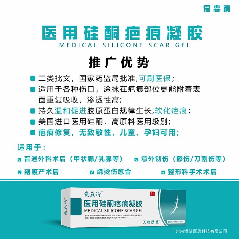 | 產(chǎn)品賣點 | 醫(yī)用疤痕修復(fù)、正規(guī)二類器械批文、明確適應(yīng)癥、一區(qū)一碼、嚴(yán)格控銷、學(xué)術(shù)支持。 1.二類批文,國家藥監(jiān)局批準(zhǔn),可刷醫(yī)保; 2.適用于**傷口,涂抹在疤痕部位更能附著表面重復(fù)吸收,滲透性高; 3.持久溫和促進(jìn)膠原蛋白規(guī)律生長,軟化疤痕; 4.美國進(jìn)口醫(yī)用硅酮,醫(yī)用級別高原料; 5.疤痕修復(fù),無致敏性,兒童、孕婦可用; |