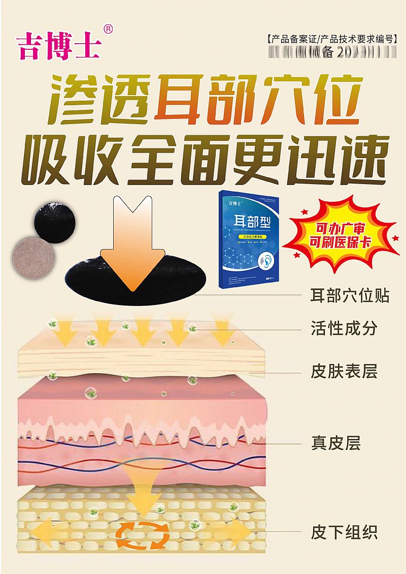| 主要成分 | 由球狀體或熱熔膠隔離層和醫(yī)用膠布組成。貼于人體穴位處,通過外力僅起壓力刺激作用。非無菌產品。所含成分不發(fā)揮紅外輻射治療、磁療作用。不含有發(fā)揮藥理學、免疫學或者代謝作用的成分。不包含第一類醫(yī)療器械分類目錄附錄所列成分。 |