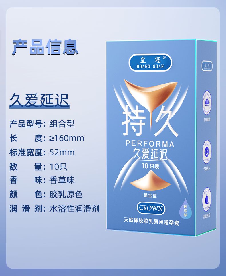 皇冠持久緊繃耐時(shí)玻尿酸避孕套成人用品10只裝
