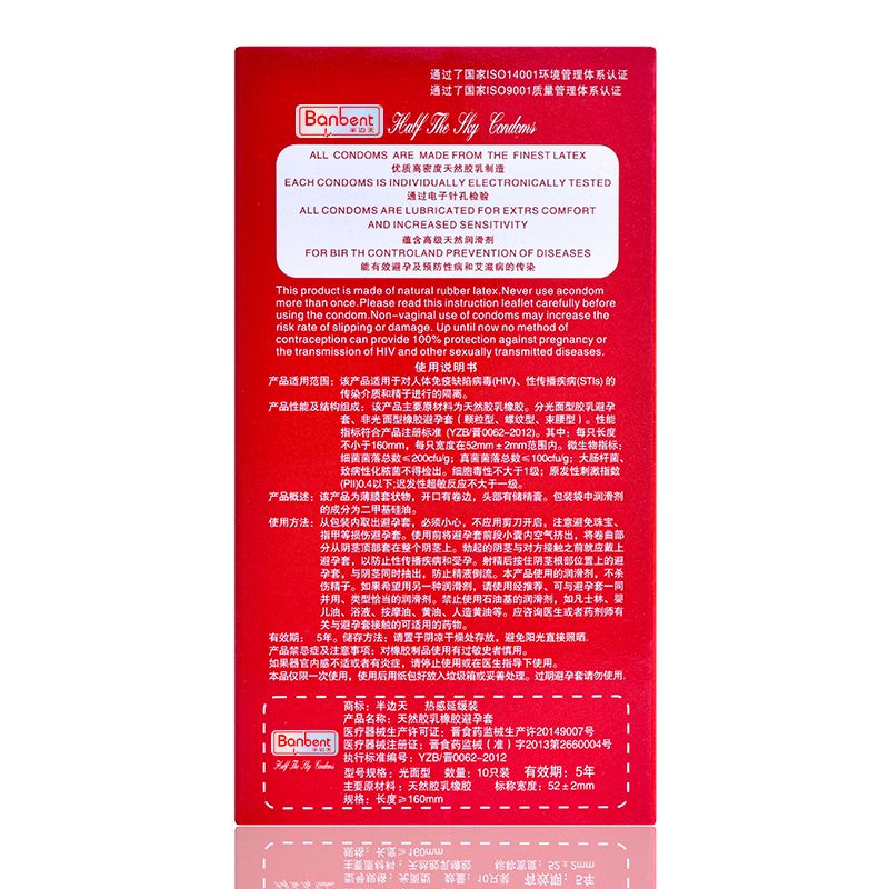 | 補充說明 | 半邊天避孕套采用天然乳膠為原料經加工制成,潤滑劑為二甲基硅油,對天然乳膠過敏者慎用,或使用前咨詢醫(yī)生,該避孕套為一次性用品,切勿重復使用,使用后請妥善棄置。該避孕套潤滑劑中不含殺精劑或藥物成分。半邊天避孕套在正確使用下,有助于降低受孕風險及減少某些性傳播疾病感染的風險。 |