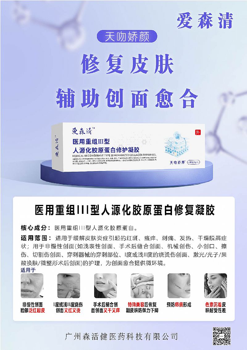 產(chǎn)品名稱: 醫(yī)用重組III型人源化膠原蛋白修護(hù)凝膠