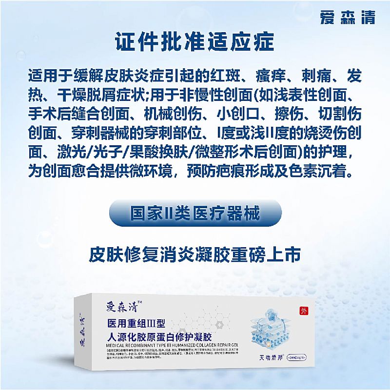 | 產(chǎn)品名稱 | 醫(yī)用重組III型人源化膠原蛋白修護(hù)凝膠 |