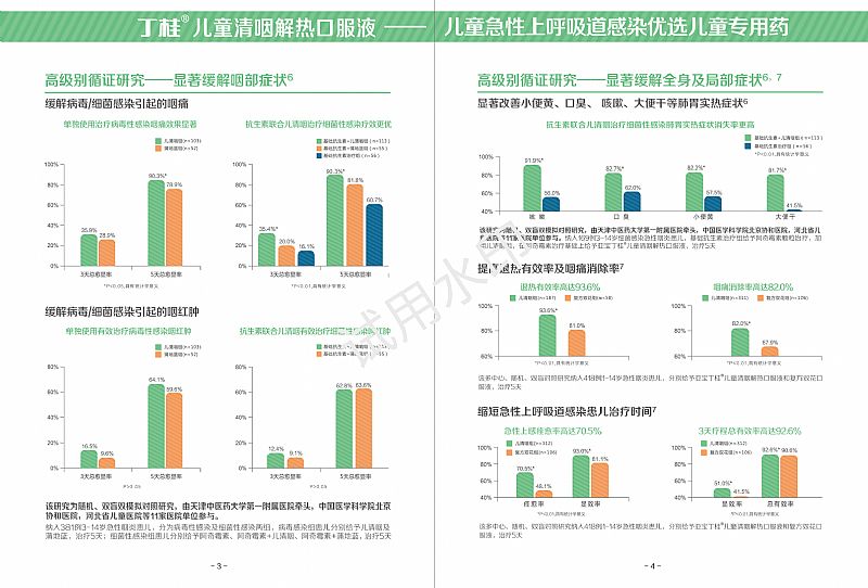 | 補(bǔ)充說明 | 專為兒童定制的急性上感藥物 1、口味升級(jí) 創(chuàng)新矯味技術(shù),**阻隔苦味,提高患兒服藥依從性 2、劑量明確 有分年齡段用法用量,適合不同年齡兒童使用;瓶身標(biāo)記半支用量刻度,兒童用藥更準(zhǔn)確 3、功效明確 說明書中有明確的兒童中、西醫(yī)疾病名稱,為中、西醫(yī)醫(yī)生處方提供準(zhǔn)確依據(jù)、對(duì)癥治療 4、劑型適合兒童服用 口服液體制劑比顆粒劑吸收更快,減少?zèng)_泡等操作步驟,兒童服藥更方便 5、不傷脾胃,與其他清熱劑毒藥不同,腹瀉發(fā)生率低,保護(hù)脾胃不受傷,更適合兒童使用 6、循證支持 在兒童身上獲取的高級(jí)別循證證據(jù)證明:獲多項(xiàng)兒科指南推薦 RCT 研究證明兒清咽具有卓越療效及**性: 1、兒童清咽解熱口服液治療小兒急性咽炎(肺胃實(shí)熱證) 具有明顯的療效,服用方便,是治療小兒急性咽炎(肺胃實(shí)熱證)的有效藥物 2、緩解病毒/細(xì)菌感染引起的咽痛 3、緩解病毒/細(xì)菌感染引起的咽紅腫 |
