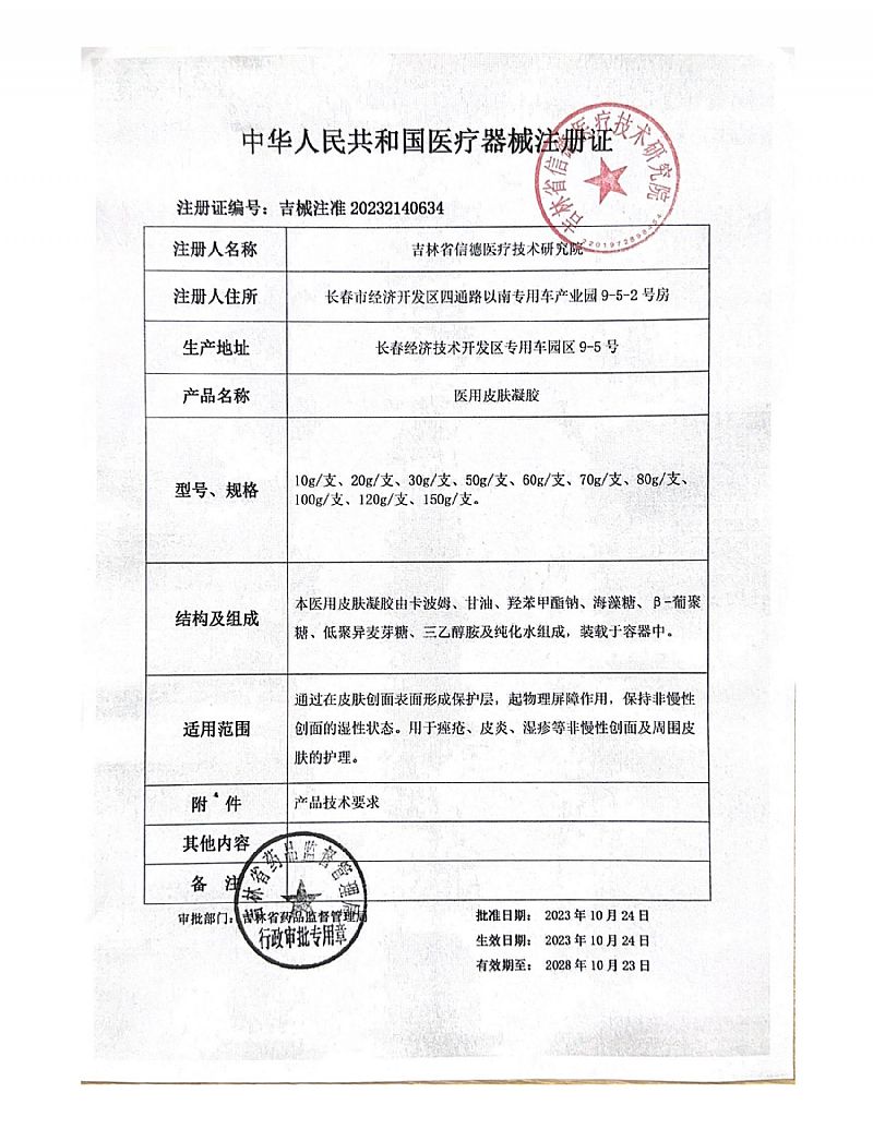 產(chǎn)品名稱: 醫(yī)用皮膚凝膠