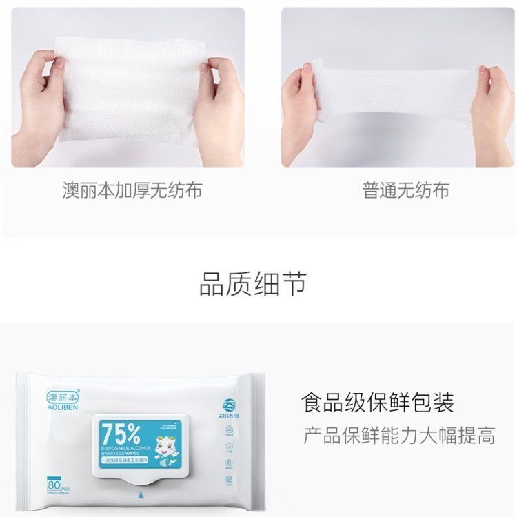 | 其它說(shuō)明 | 酒精濕巾一般是一片潔凈的無(wú)紡布,蘸75%左右的醫(yī)用酒精溶液,制成的片狀的消毒用品。它的成分中含有75%的乙醇,因此具有殺菌、消毒的作用。酒精濕巾采用獨(dú)立包裝,衛(wèi)生便捷,減少細(xì)菌滋生,攜帶方便,且易撕裂,而且親膚舒適,不掉毛、韌性強(qiáng)、不刺激,快速揮發(fā)殘留少,是家庭常備的產(chǎn)品。 |