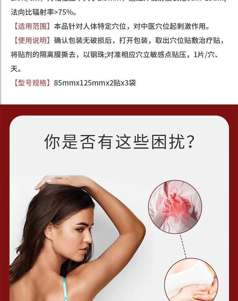| 產(chǎn)品用途 | 本品針對(duì)人體特定穴位,對(duì)中醫(yī)穴位起刺激作用。 |