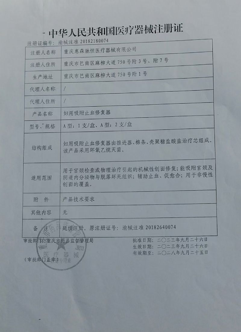 | 產(chǎn)品名稱 | 婦用吸附止血修復(fù)器 |