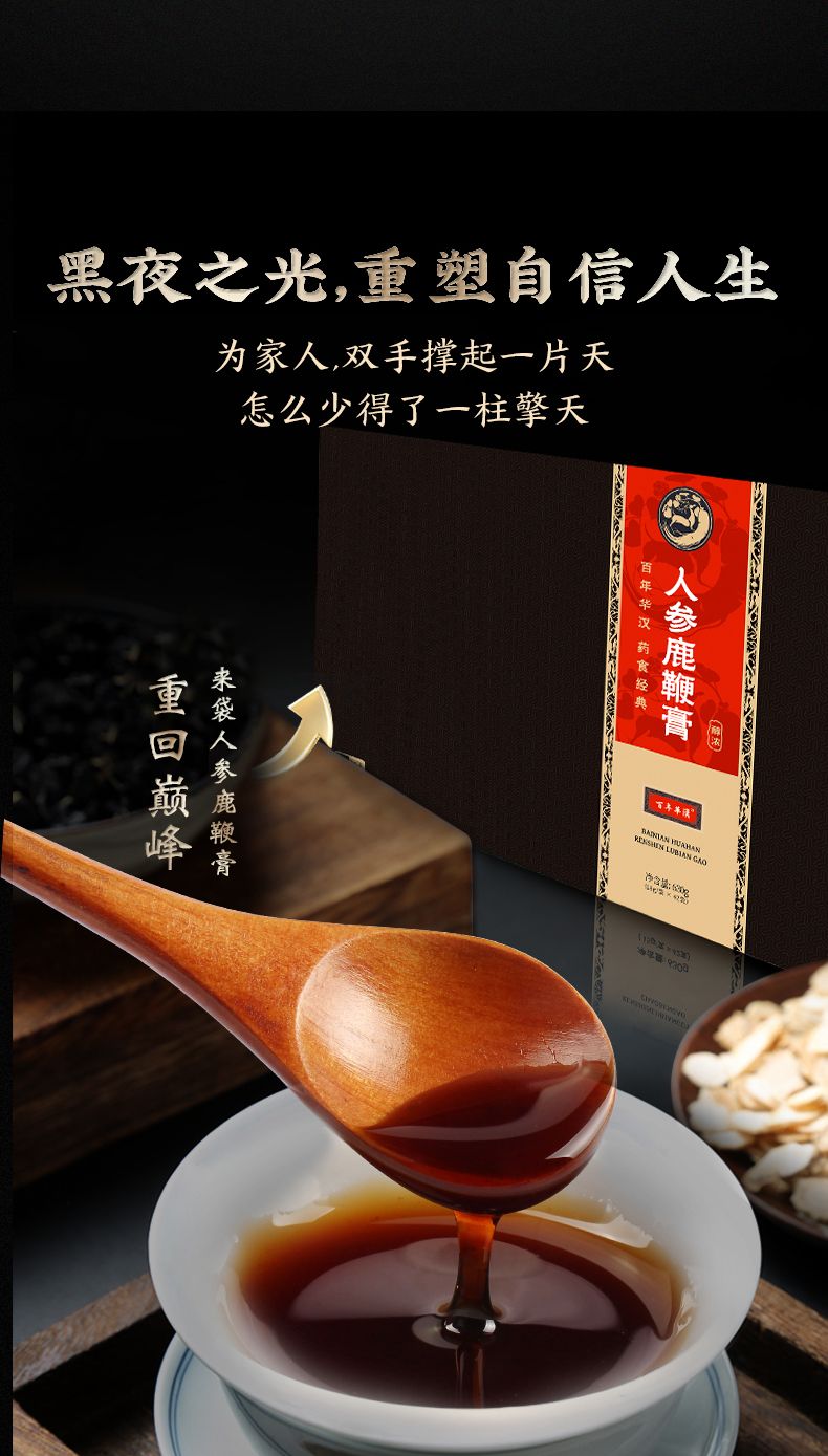 | 主要成分 | 人參鹿鞭膏的主要成分包括人參、鹿鞭(或鹿茸)、黃精、枸杞、山藥、桑葚、蜂蜜或麥芽糖等中草藥及輔料。 |