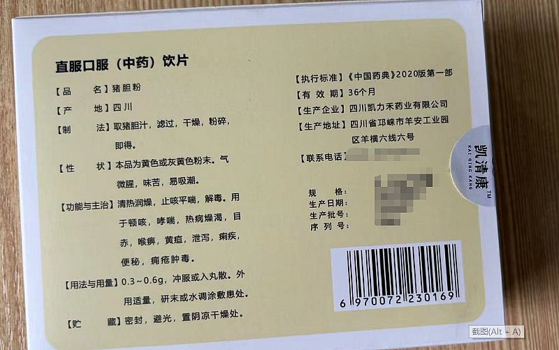 | 主要成分 | 豬膽 |