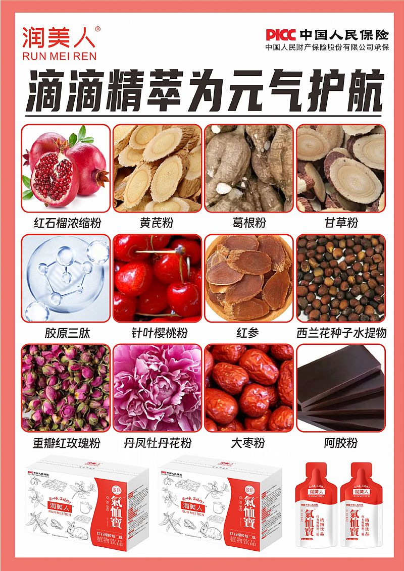 | 主要成分 | 飲用水、紅石榴濃縮粉、黃芪粉、葛根粉、膠原三肽、針葉櫻桃果粉、紅參(5年及5年以下人工種植的人參)、重瓣紅玫瑰粉、丹鳳牡丹花粉、大棗粉、西蘭花種子水提物、血蛋白低聚肽、阿膠粉、甘草粉、γ~氨基丁酸、茶葉茶氨酸、N-乙酰神經(jīng)氨酸、羧甲基纖維素鈉、三氯蔗糖、山梨酸鉀 |