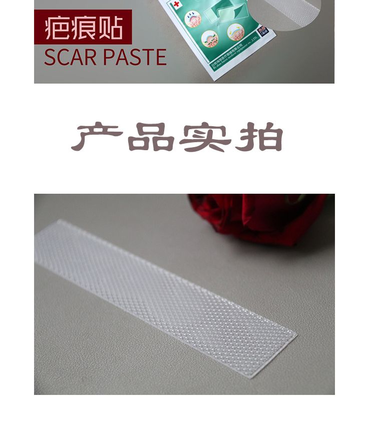| 主要成分 | 疤痕貼主要是硅凝膠敷料,利用硅酮祛疤及壓覆抑制增生的原理來抗疤。 |