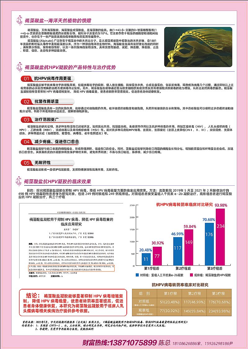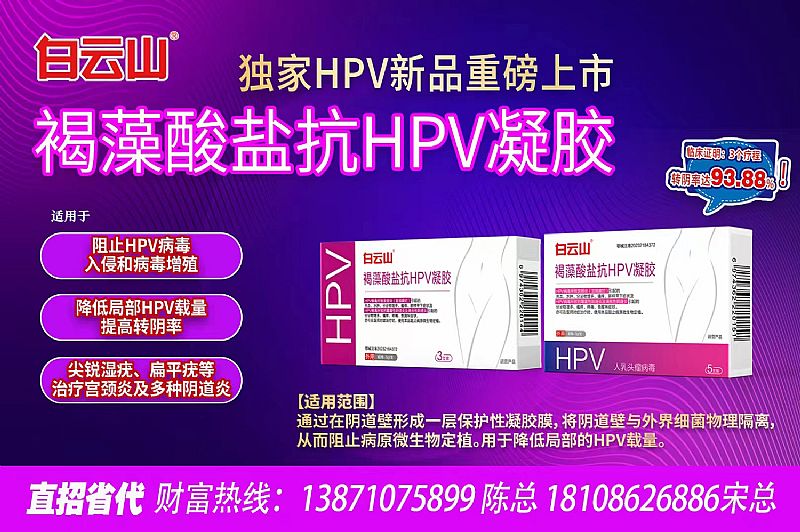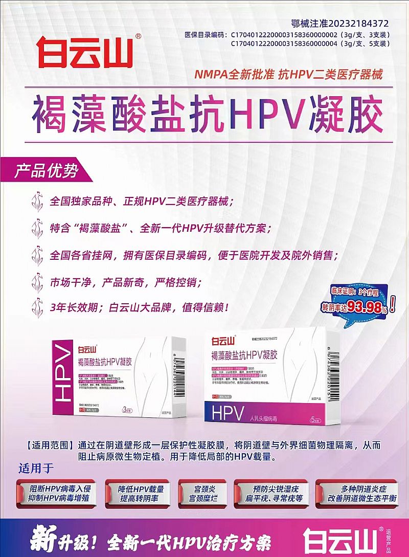 | 產(chǎn)品賣點 | 1.全國獨家品種、正規(guī)HPV二類醫(yī)療器械; 2.特含“褐藻酸鹽”、全新一代HPV升級替代方案; 3.全國各省掛網(wǎng),擁有醫(yī)用耗材醫(yī)保目錄編碼,便于醫(yī)院開發(fā)及院外銷售; 4.市場干凈,產(chǎn)品新奇,嚴(yán)格控銷,嚴(yán)禁掛網(wǎng); 5.白云山大品牌,值得信賴!不掛網(wǎng);控銷;獨家; |