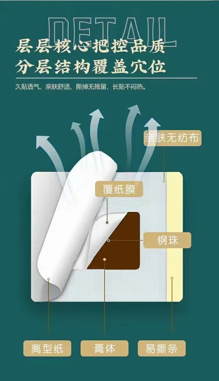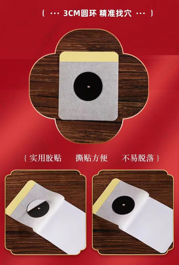 | 使用方法 | 1、清潔相應(yīng)穴位,先以拇指依次揉按相應(yīng)穴位,每穴1~2分鐘,范圍由小到大,力量由輕到重,探尋敏感點(diǎn)。2、確認(rèn)包裝無破損后,打開包裝,取出穴位貼敷治療貼,將貼劑的隔離膜撕去,以鋼珠對準(zhǔn)相應(yīng)穴位敏感點(diǎn)貼壓,1片/穴、天,每日適度按壓3~5次,每次3~5分鐘,1個療程為10天,療程間隔2~3天 |