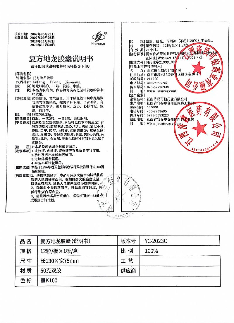 | 主要成分 | 地龍(鮮品)、川芎、黃芪、牛膝。 |