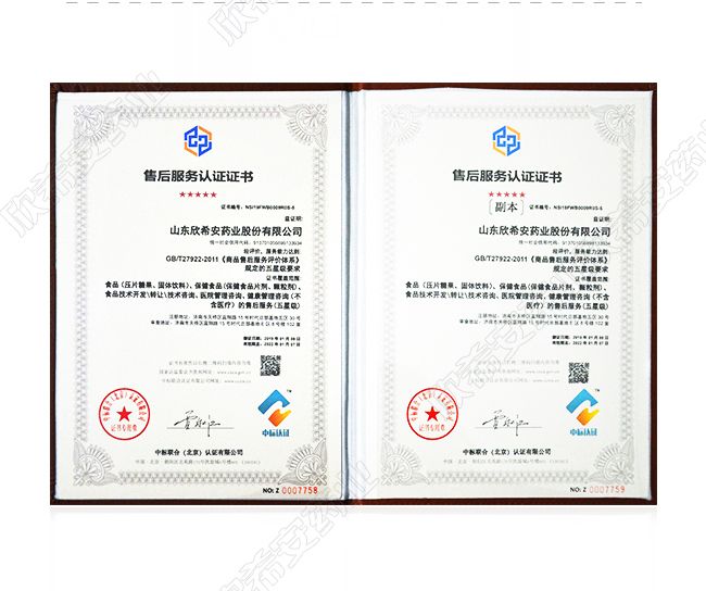 | 補(bǔ)充說明 | 山東欣希安藥業(yè)股份有限公司成立20多年,是一家集天然功能食品、保健食品、特醫(yī)食品研發(fā)、生產(chǎn)和銷售于一體的國家級高新技術(shù)企業(yè),是第四代蛋白鋅硒技術(shù)的開創(chuàng)者。先后獲得國家高新技術(shù)企業(yè)認(rèn)證、知識(shí)產(chǎn)權(quán)管理體系認(rèn)證、5星售后服務(wù)認(rèn)證、中國星品牌、消費(fèi)者滿意品牌。 自有生產(chǎn)基地 品質(zhì)有保障,公司擁有十萬級凈化生產(chǎn)車間,片劑、粉劑、膠囊劑等多條生產(chǎn)線,現(xiàn)代化生產(chǎn)設(shè)備、先進(jìn)的檢測儀器、美國反滲透純化水設(shè)備,質(zhì)檢中心配有原子吸收分光光度計(jì)、原子熒光光譜儀、高效液相色譜儀等先進(jìn)的檢驗(yàn)儀器,為產(chǎn)品質(zhì)量提供支持,公司視質(zhì)量為企業(yè)的生存之本,嚴(yán)格按GMP要求組織生產(chǎn),從原輔料采購到生產(chǎn)加工、檢驗(yàn)等各環(huán)節(jié)嚴(yán)控質(zhì)量,做到產(chǎn)品質(zhì)量零缺陷,對消費(fèi)者的健康負(fù)責(zé)。 通過市場監(jiān)管局保健食品和食品雙重生產(chǎn)許可認(rèn)證。嚴(yán)格的質(zhì)量管理體系認(rèn)證,通過ISO9001、HACCP、ISO22000等多項(xiàng)質(zhì)量管理體系認(rèn)證。 |