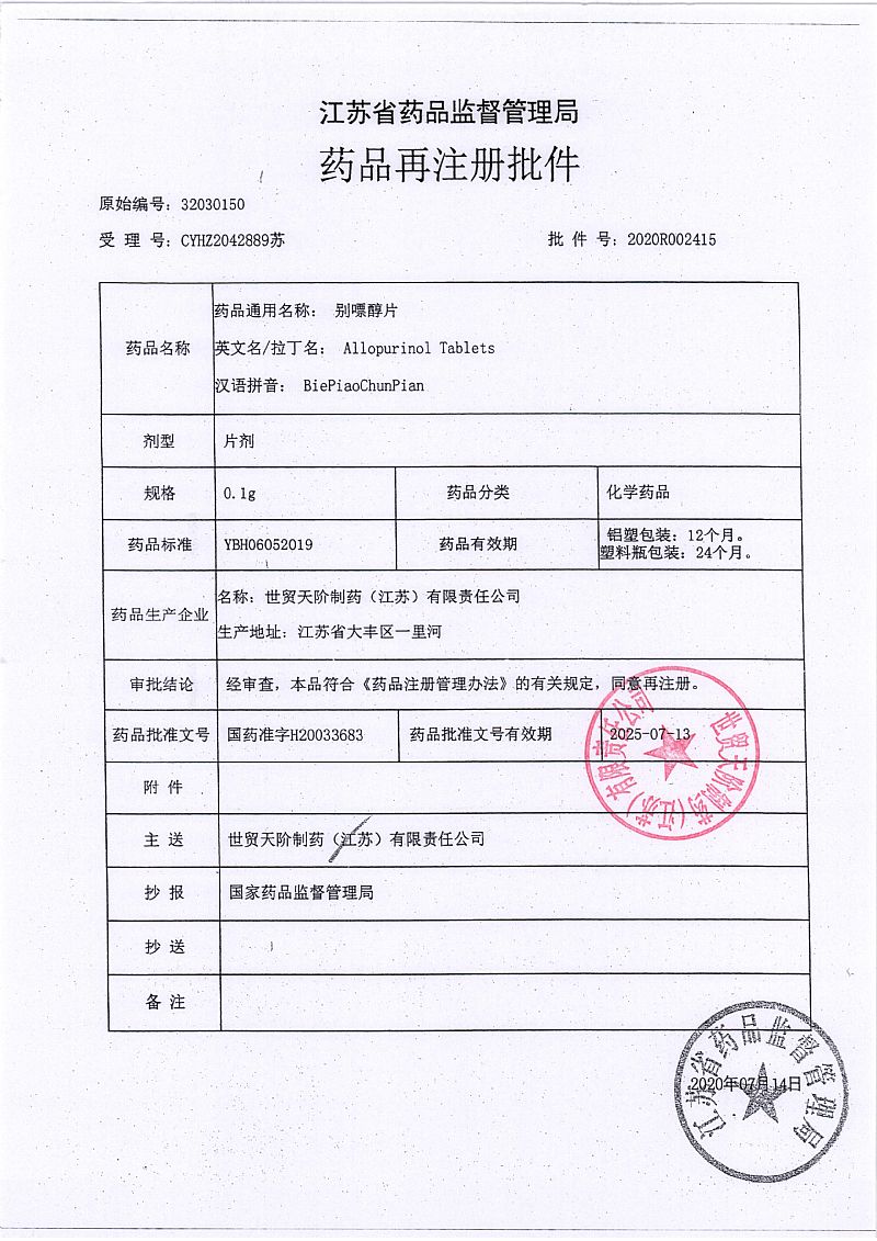 | 英文名稱 | Allopurinol Tablets |