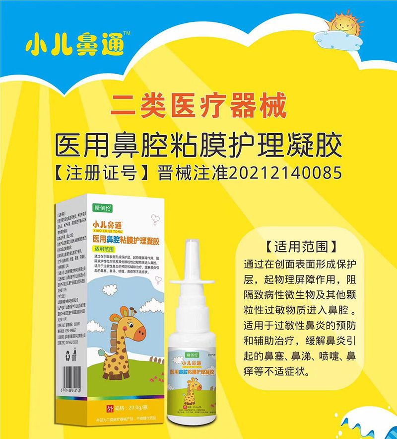 | 產品用途 | 通過在創(chuàng)面表面形成保護層,起物理屏障作用,阻隔致病性微生物及其他顆粒性過敏物質進入鼻腔。適用于過敏性鼻炎的預防和輔助治療,緩解鼻炎引起的鼻塞、鼻涕、噴嚏、鼻癢等不適癥狀輔助護理。 |