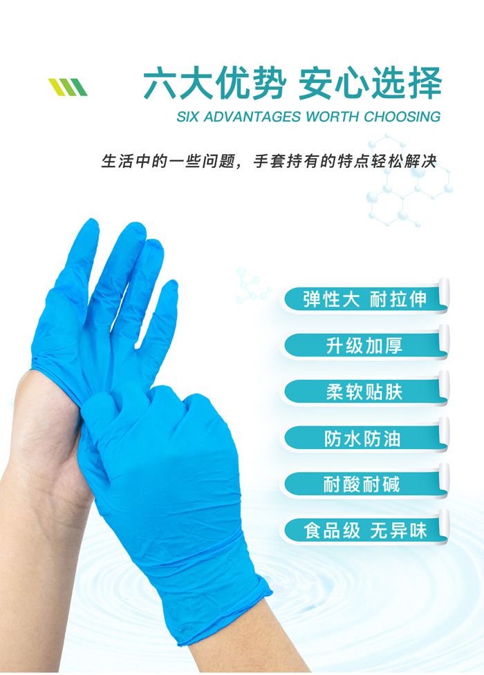 | 產(chǎn)品規(guī)格 | 根據(jù)使用材料不同分為:丁腈、橡膠、乳膠、天然、PVC、 |