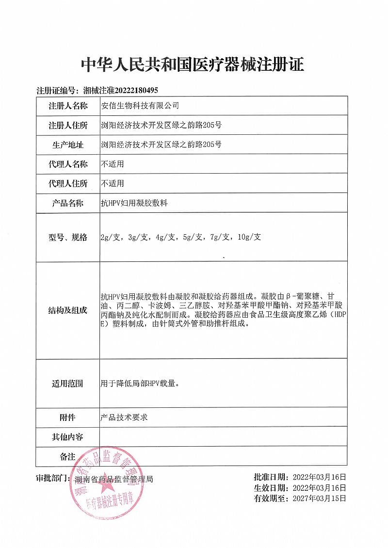 | 產(chǎn)品名稱 | 抗HPV婦用凝膠敷料 |