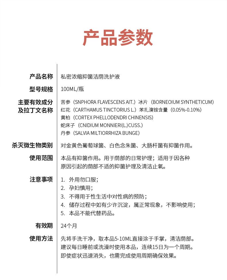 | 產(chǎn)品名稱 | 私密濃縮抑菌潔陰護理液-舒欣妍™; |