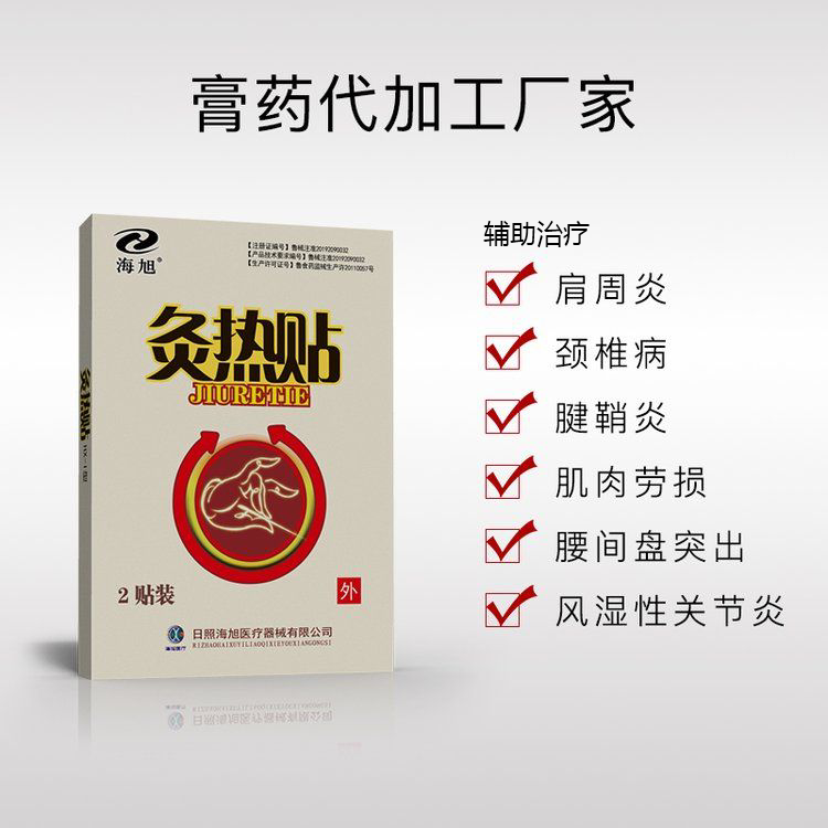 - 海旭醫(yī)療主要承接各類暖宮貼定制、遠紅外理療貼代加工、磁療貼貼牌加工、穴位敷貼廠家、灸熱貼代加工、退熱貼代加工、燙熨治療包定制、小兒咳 喘腹瀉膏藥定制加工、艾灸貼定制、化妝品定制、保健食品定制、噴劑、乳膏類加 工等醫(yī)院臨床和終端診所所需的系列產品。公司的經營范圍有:骨科,婦科、男科、手術科、五官科和小兒科等。