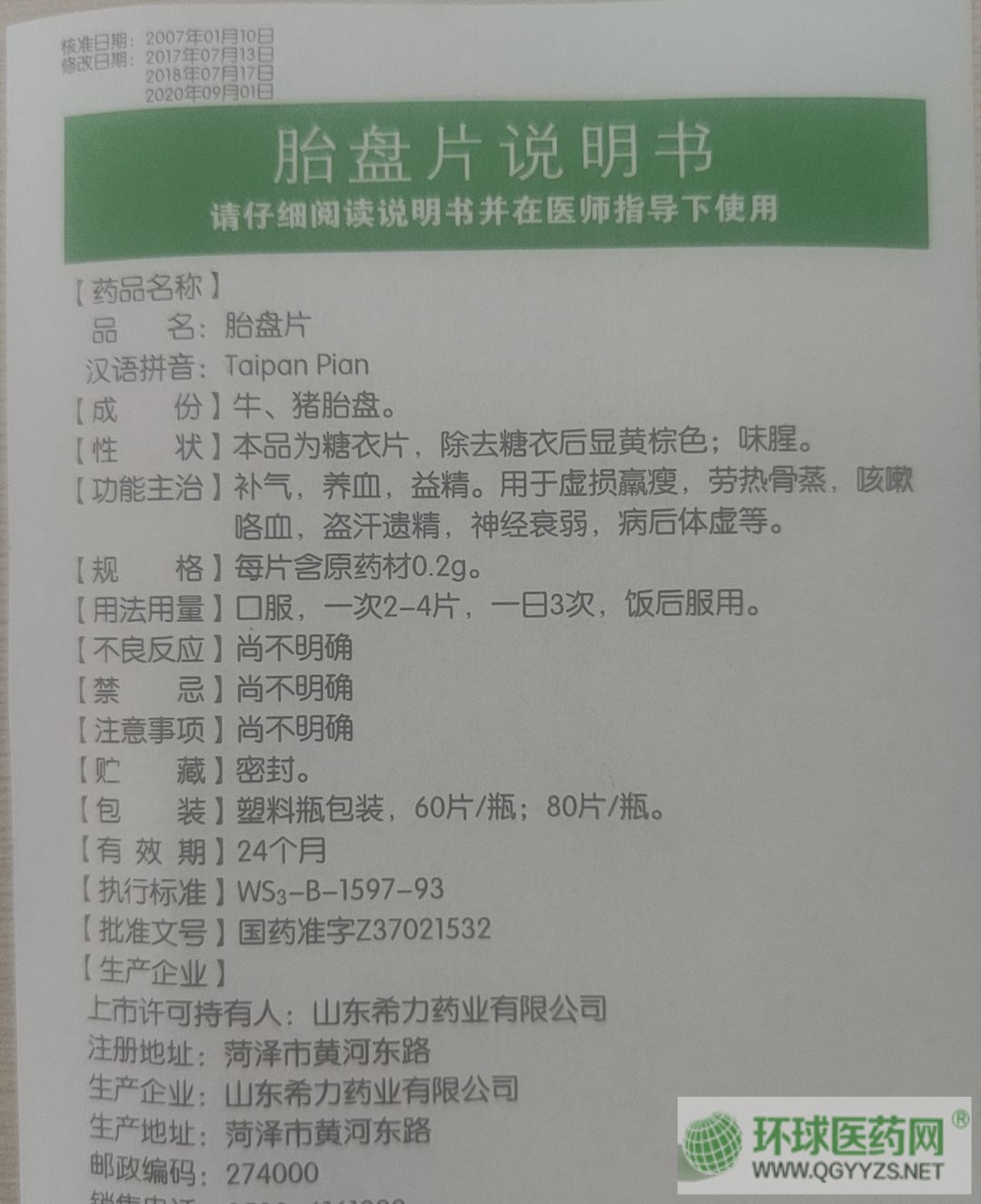 批準(zhǔn)文號: 國藥準(zhǔn)字Z37021532 【驗證真?zhèn)?/a>】