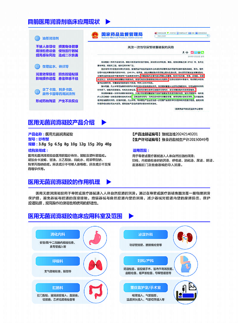 | 產(chǎn)品用途 | 用于導(dǎo)管或醫(yī)療器械進(jìn)入人體自然腔道的潤(rùn)滑;婦檢、內(nèi)窺鏡檢查時(shí)的潤(rùn)滑,呼吸道、消化道、尿道、陰道、直腸和肛門及檢查器械的導(dǎo)入潤(rùn)滑。 |
