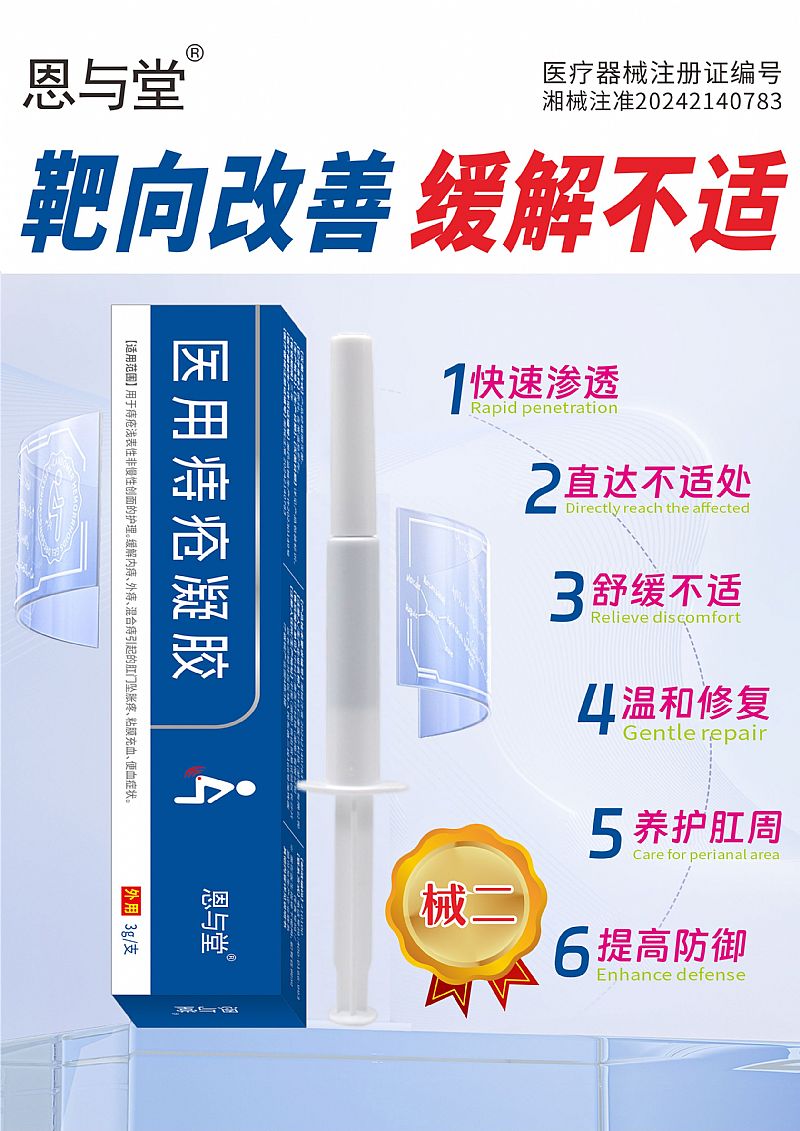 | 產(chǎn)品名稱 | 恩與堂®醫(yī)用痔瘡凝膠 |